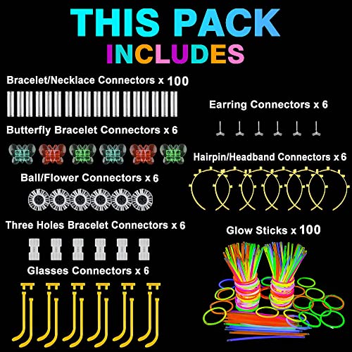- ✅ مجموعة من 236 قطعة - تتضمن مجموعة الحفلات 100 عصا ضوئية و100 وصلة سوار و36 وصلة خاصة للصنع: - 3 كرات أو 6 زهور و6 نظارات و6 أقراط و6 أشرطة رأس و6 أساور على شكل فراشة..