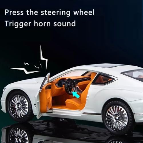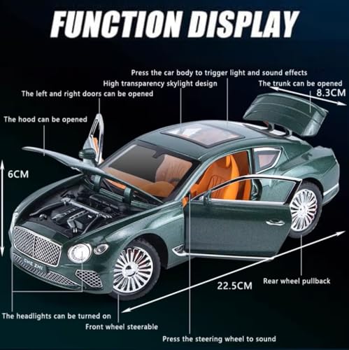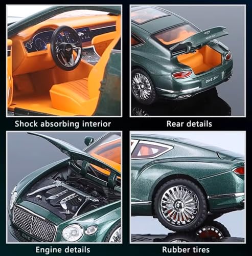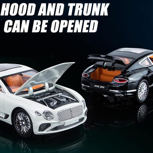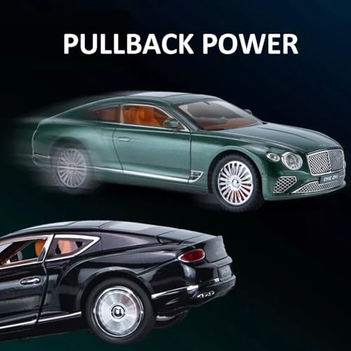 نموذج سيارة مصبوبة بمقياس 1:24 بأبواب معدنية قابلة للفتح مع محاكاة الصوت والضوء، موديل كونتيننتال جي تي، مركبة لعبة مصنوعة من خليط معدني للبالغين والأطفال والأولاد والبنات من تويز لاند (أسود)