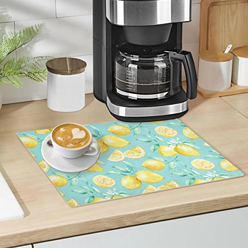 بساط تجفيف أطباق فائق الامتصاص لطاولة المطبخ من دوميكينج، بساط تجفيف بألوان مائية وتصميم ليمون لماكينة تحضير القهوة، قابل للاستخدام على الوجهين لأسطح العمل وطاولة المطبخ والمقهى