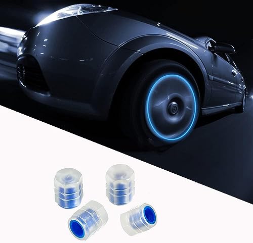 4 قطع من اغطية صمام عجلة السيارة المضيئة لصمام الاطارات للسيارات والالموتوسيكلات والشاحنات والدراجات، لون أزرق
