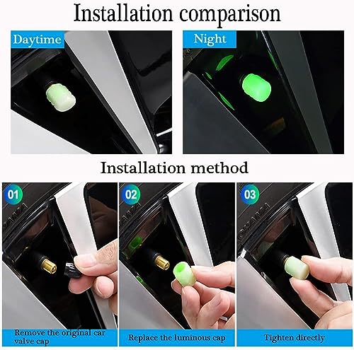 - 【مادة انبعاث للضوء】أغطية صمام إطار عجلة السيارة مصنوعة من مادة ايه بي اس لايتنينج. إنه مقاوم للماء والغبار مع منح سيارتك مظهرًا فريدًا وفاخرًا مع إضاءة مبهرة جميلة. قبعة فلورسنت، لذا يرجى وضعها في مكان مشمس لفترة قبل الاستخدام وستتوهج في الليل.