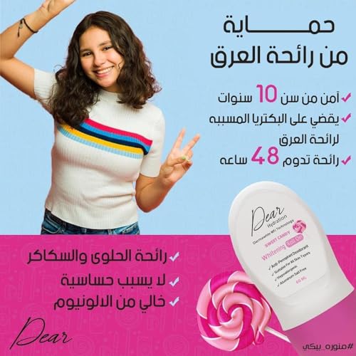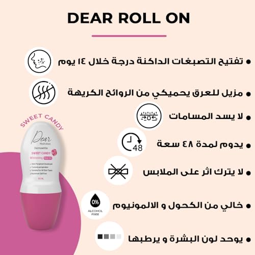مزيل عرق رول-أون من دير برائحة الحلوى للنساء، سعة 60 مل، خالٍ من الألومنيوم مع حماية 48 ساعة وتوحيد لون البشرة
