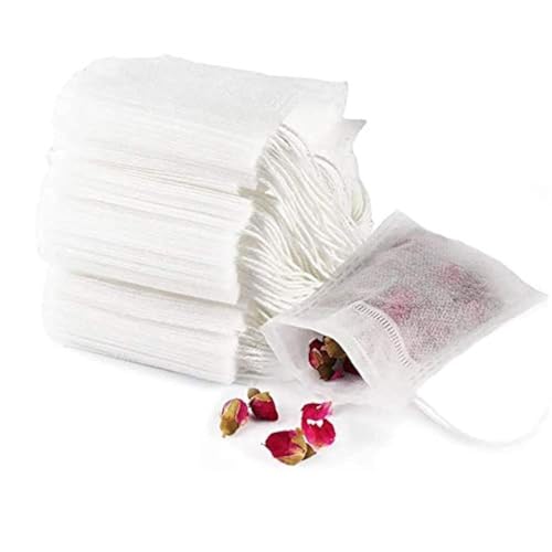 اكياس فلتر شاي فارغة للاستعمال مرة واحدة، اكياس شاي فضفاضة مزودة برباط وفلتر للشاي، اكياس متعددة الاغراض، اكياس قماشية غير منسوجة للاعشاب والتوابل والقهوة (عبوة من 100 قطعة)