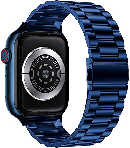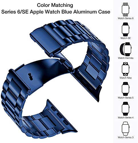 سوار ساعة معدني من الفولاذ مقاوم للصدأ لساعة آبل اي ووتش مقاس 44 ملم سلسلة 6 من في بي جي - أزرق