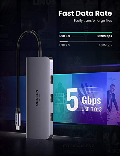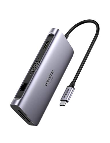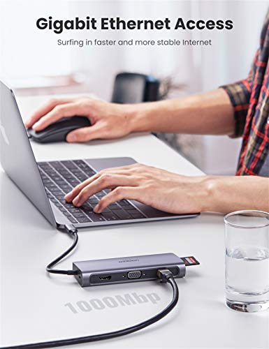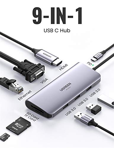 - موزع USB-C 10 في 1 موسع: يتميز موزع USB-C 10 × 1 من يوجرين بوجود منفذ جيجابت إيثرنت، ومنفذ شحن من النوع C PD، ومنفذ HDMI 4K، و 3 منافذ USB 3.0، وقارئ بطاقة SD / TF، ومقبس صوت 3.5 ملم، ومنفذ 1080P VGA . يمكن استخدام جميع منافذ الموزع في نفس الوقت، مما يسمح لك بتوصيل لوحة المفاتيح، والماوس، وفلاشة USB، والهارد الخارجي بجهازك.