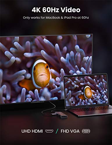 موزع USB - C من يوجرين 10 ×1 محول متعدد المنافذ نوع سي الى 4K 60 هرتز HDMI منصة متعددة بمنافذ VGA وجيجابت ايثرنت منفذ PD للشحن 3 منافذ 0.3 وقارئ بطاقات SD لماك بوك برو 80133 . أسود