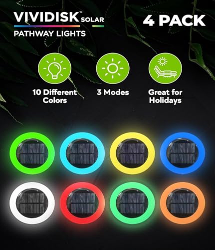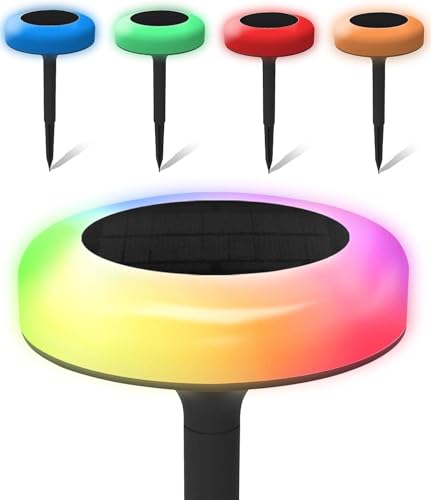 مصابيح حديقة تعمل بالطاقة الشمسية سهلة التركيب ومتغيرة اللون، 4 قطع من مصابيح الممر/الفناء، مصابيح المناظر الطبيعية الشمسية المقاومة للماء، مصابيح الحديقة/الممشى/الممر...