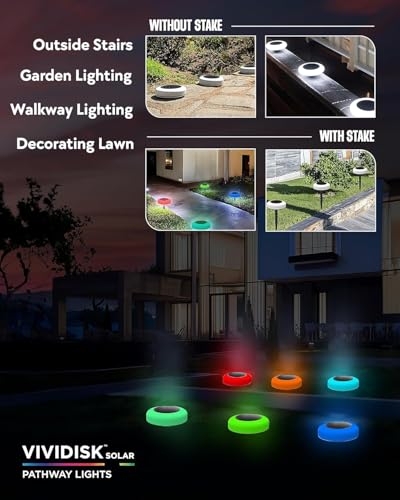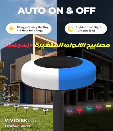 - أضواء الحديقة الشمسية: أضئ حديقتك مع أضواء الممرات الشمسية الخارجية ، تتميز أضواء الممرات الشمسية المتغيرة اللون هذه بمصابيح LED فائقة السطوع داخل غلاف جميل مقاوم للماء وعصري بينما يضيف التصميم المتغير اللون الضوء والأناقة إلى أي مساحة خارجية، مما يسمح باستخدام أضواء الحديقة الشمسية كأضواء للمناظر الطبيعية وأضواء الممرات الشمسية .
