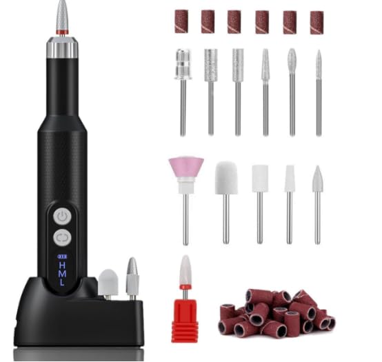 - 【ما ستحصل عليه】: مبرد أظافر كهربائي، قاعدة شحن، كابل بيانات، مثقاب سيراميك، 11 مبردًا احترافيًا، 36 شريط صنفرة بأحجام حبيبات مختلفة، دليل مستخدم، من فترول. -