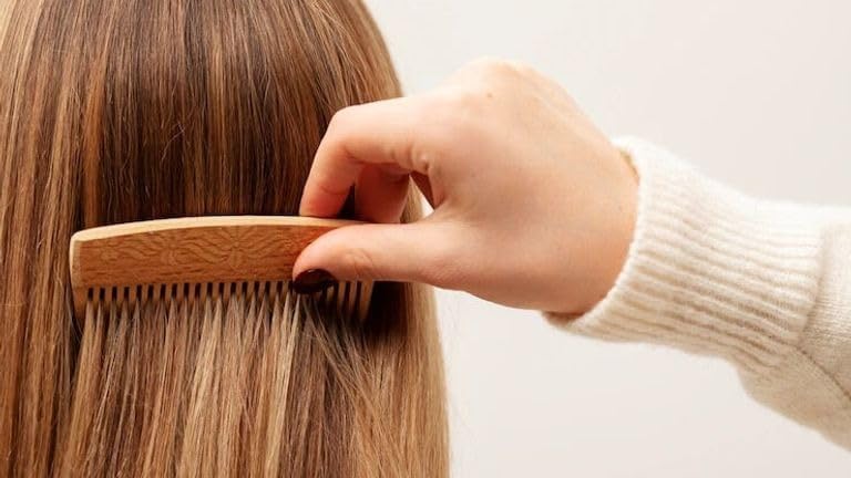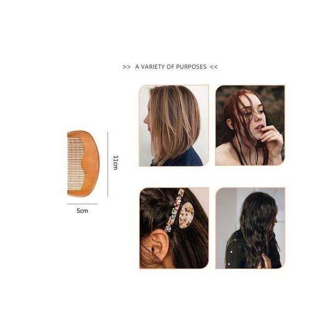 مشط خشب طبيعي محمول على شكل قمر، قطعة واحدة