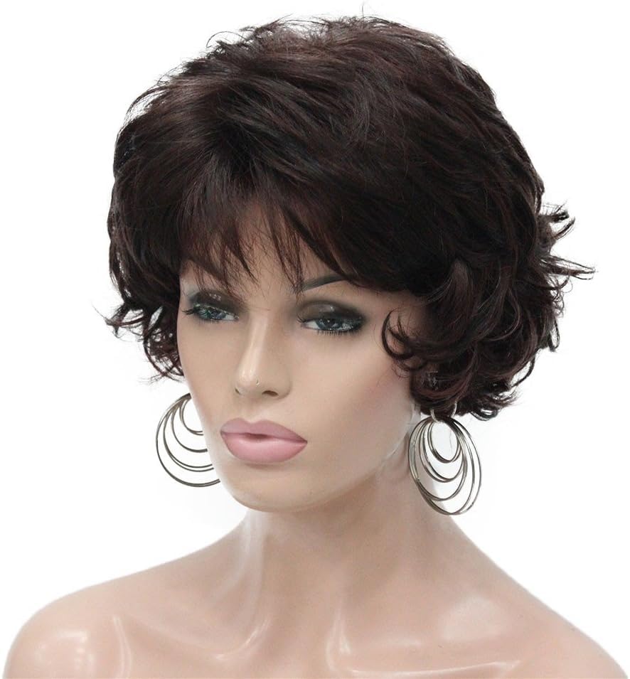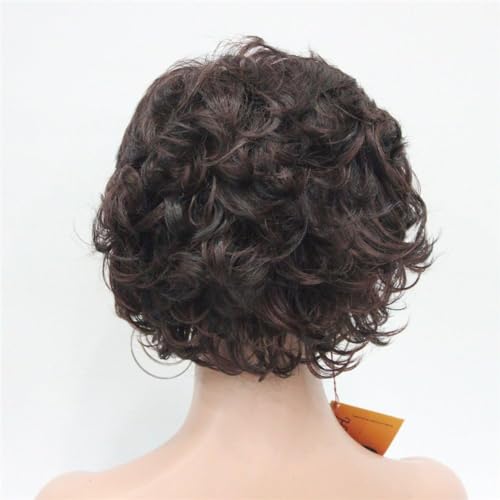 باروكة شعر مجعد قصير سميك صناعي بالكامل بدون غطاء للاستخدام اليومي للنساء ، بني
