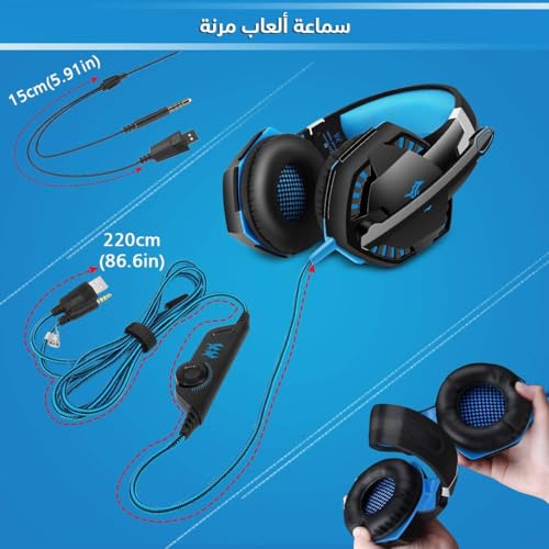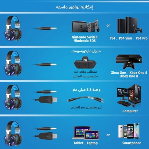 سماعة راس ستيريو للالعاب لاجهزة بلاي ستيشن 4 واكس بوكس ون سماعات باس فوق الاذن سلكي ازرق