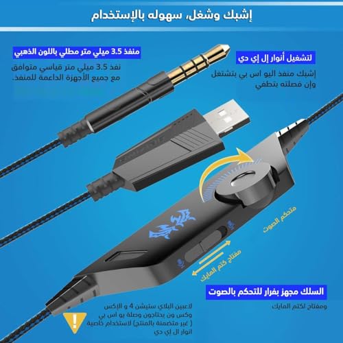 - ملاحظة: إنارة الإل إي دي تحتاج لاستخدام منفذ يو إس بي