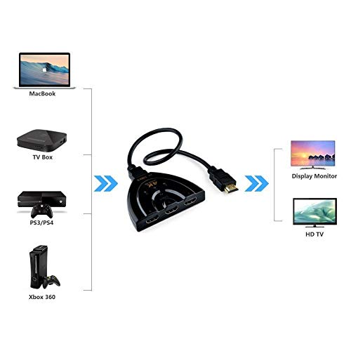 - يقوم هذا المفتاح متعدد المنافذ بتوجيه 3 مدخلات HDMI إلى مخرج واحد (بدقة متعددة تصل إلى 4 كيه) والصوت الرقمي من ثلاثة مصادر إلى وحدة عرض.