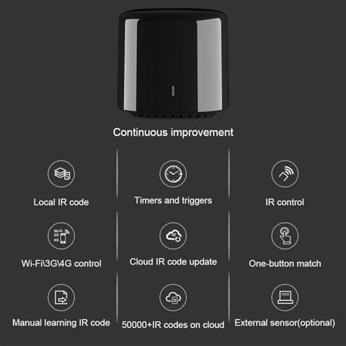 - يقوم قاذف الأشعة تحت الحمراء هذا بإنشاء عدة مؤقتات ومشاهد حسب الحاجة ويدعم الكشف عن درجة الحرارة والرطوبة الخارجية للغرفة التي يوجد بها الجهاز. قم بتنشيط وجدولة الوظائف يوميًا وتكييفها مع احتياجاتك. ضمان لمدة عام واحد على مدار 24 ساعة، دعم فني غير محدود وأدلة فيديو من يوتيوب وصفحة علامتنا التجارية.