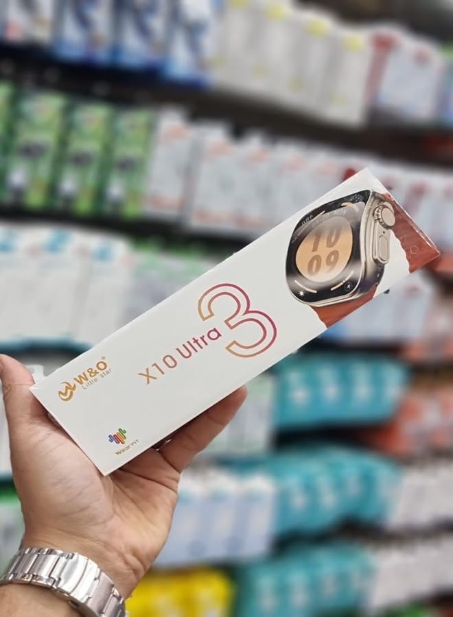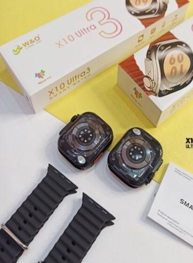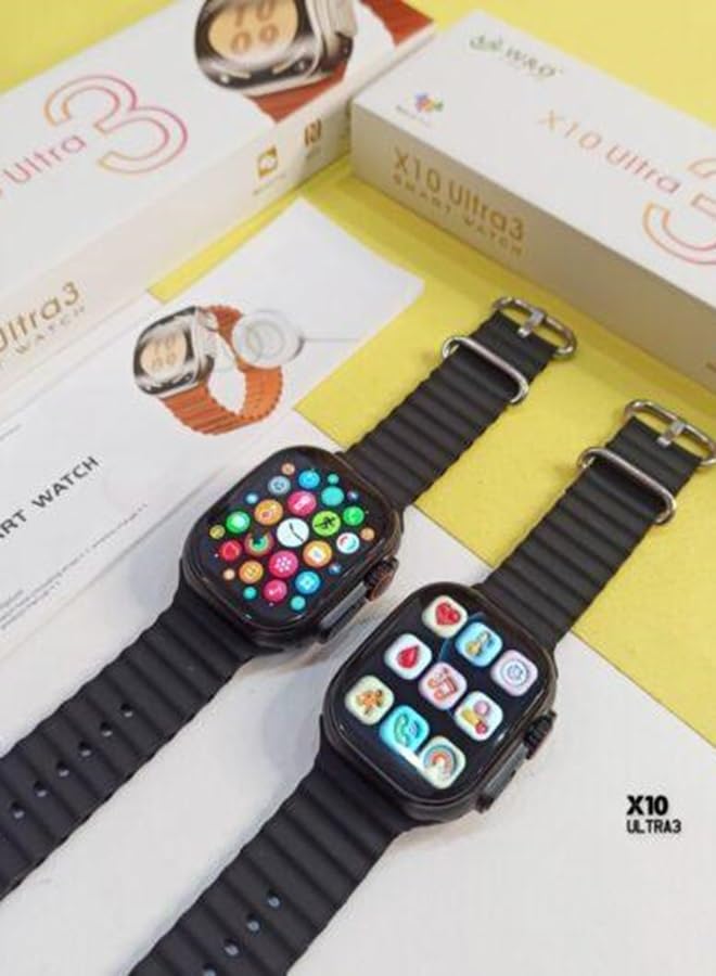 ساعة ذكية X10 Ultra 3 من الزجاج المنحني مع حزام سيليكون وشحن لاسلكي اسود