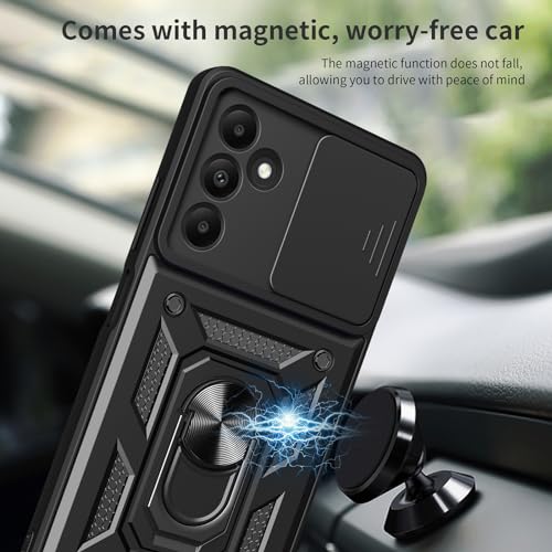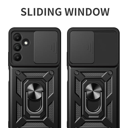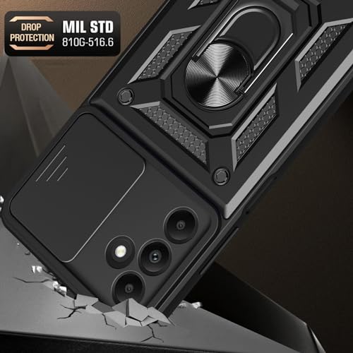 جراب حماية مقاوم للصدمات مصنوع من بولي يوريثين للحرارة وبولي كربونات ومزود بغطاء كاميرا منزلق متوافق مع سامسونج جالاكسي M34 أسود