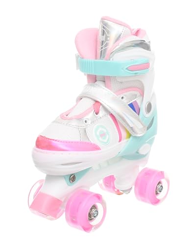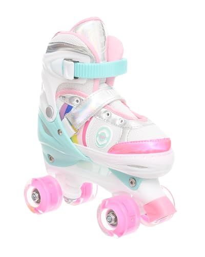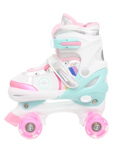 حذاء تزلج بأربع عجلات مع إضاءة ليد ملونة و4 أقماع تدريب، وردي وأبيض، سمول S