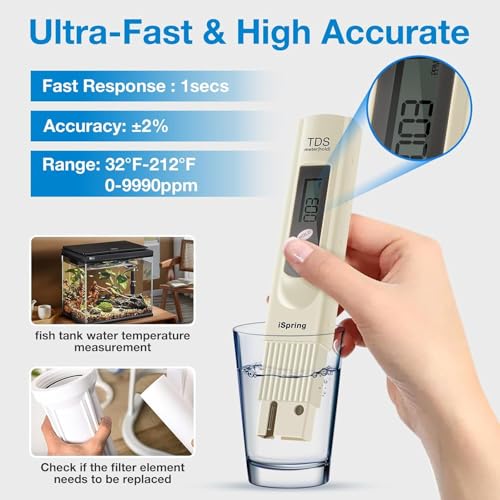 - [يجب اقتناء جهاز اختبار جودة المياه]: يُعد مقياس إجمالي المواد الصلبة الذائبة في الماء أداةً رائعةً لاختبار جودة المياه لمياه الشرب وأنظمة تنقية المياه مثل أنظمة التناضح العكسي أو التناضح الثنائي وأحواض السمك والزراعة المائية (لاختبار العناصر الغذائية) وحمامات السباحة والمنتجعات الصحية والتطبيقات التجارية والصناعية والمزيد. ولذلك يُعد مقياس إجمالي المواد الصلبة الذائبة في الماء رائعًا للتحقق من جودة مياه الصنبور ومعرفة وقت تغيير الفلتر.