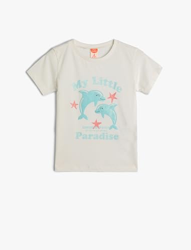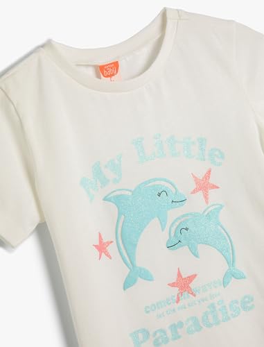 تيشرت قطن مطبوع عليه دولفين ورقبة دائرية ضيقة وأكمام قصيرة للبنات بعمر 9/12 أشهر من كوتون، 010 اكرو