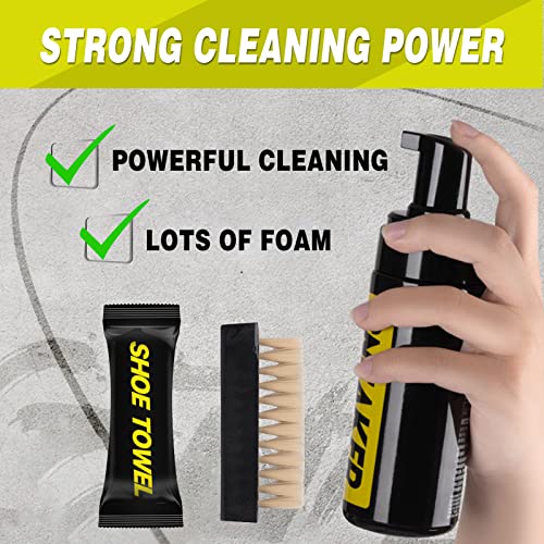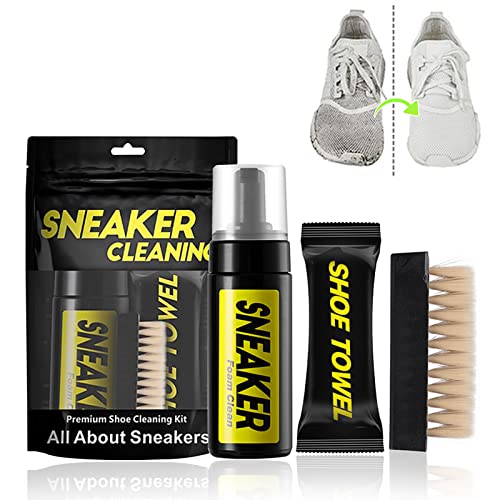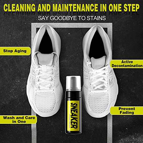 مجموعة تنظيف الأحذية الرياضية - منظف رغوي + بخاخ مقاوم للماء + مزيل للروائح - للشبكة والجلد والشمواه والقماش والأحذية الرياضية البيضاء - تتضمن فرشاة وقطعة قماش - بدون شطف من جنبارو