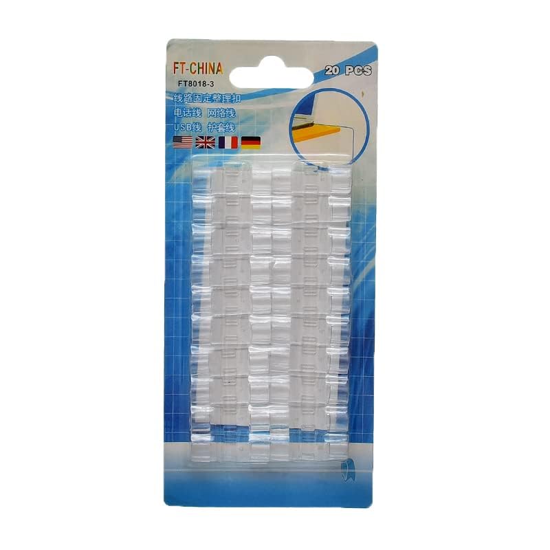 منظم أسلاك صغير من البلاستيك مع لاصق مزدوج من 20 قطعة - شفاف