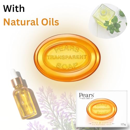 - قالب صابون بيرز مصنوع باستخدام عملية صب فريدة تؤدي إلى شفافية نقية. تحتوي العبوة على 3 قطع صابون بوزن 125 غرام (زيت طبيعي، مستخلص زهرة الليمون، مستخلص النعناع) و1 × حامل صابون.