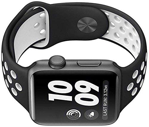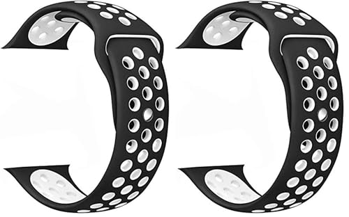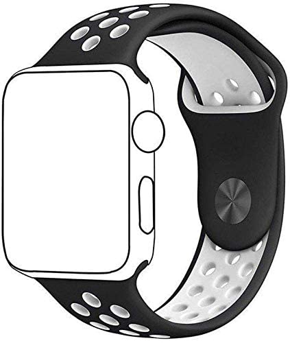 سوار ساعة رياضي بديل من السيليكون بفتحات جيدة التهوية لسوار ساعة ابل 42-44 ملم، اسود وابيض، متعدد المقاسات، للجنسين