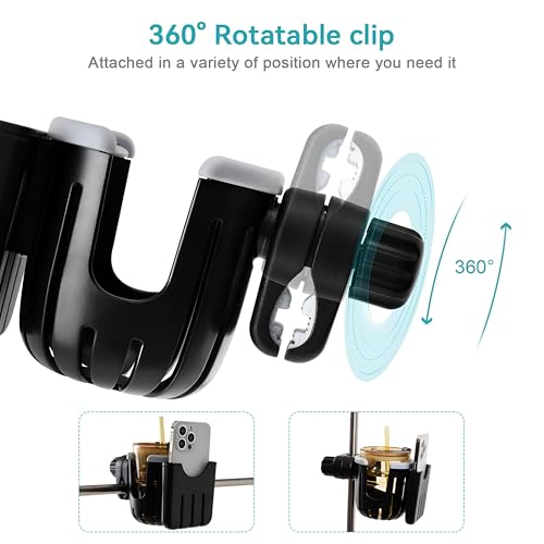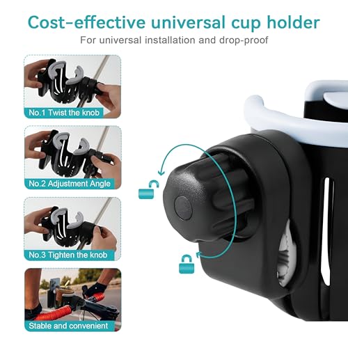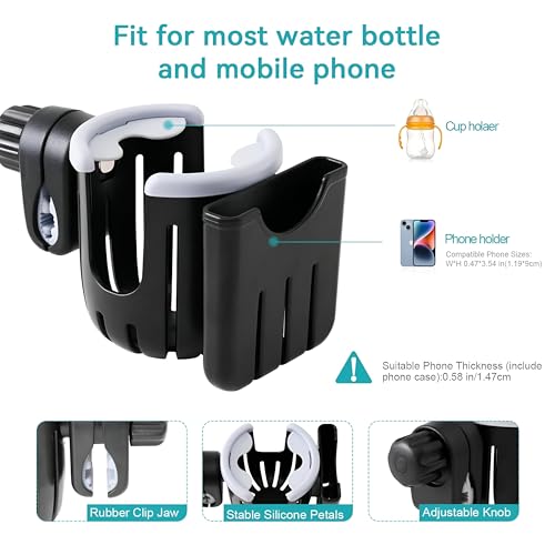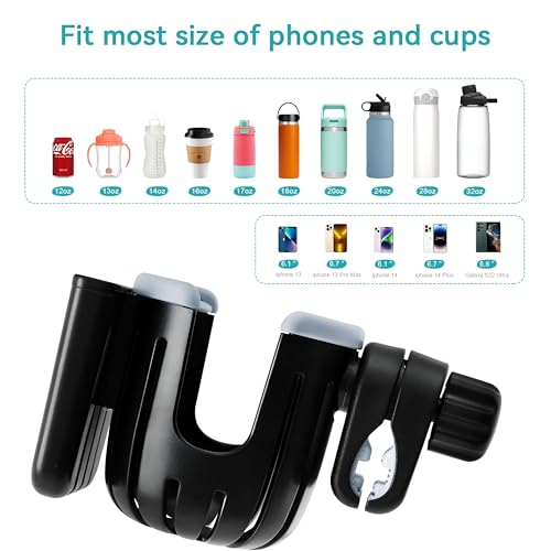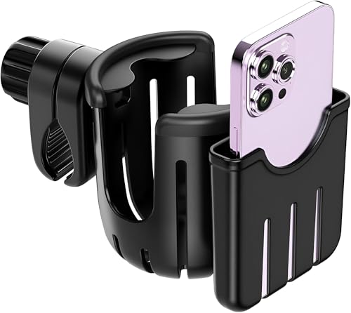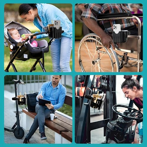 حامل أكواب عملي مع قاعدة مخصصة للموبايل، رفيق السفر لعربات الأطفال والكراسي المتحركة والدراجات