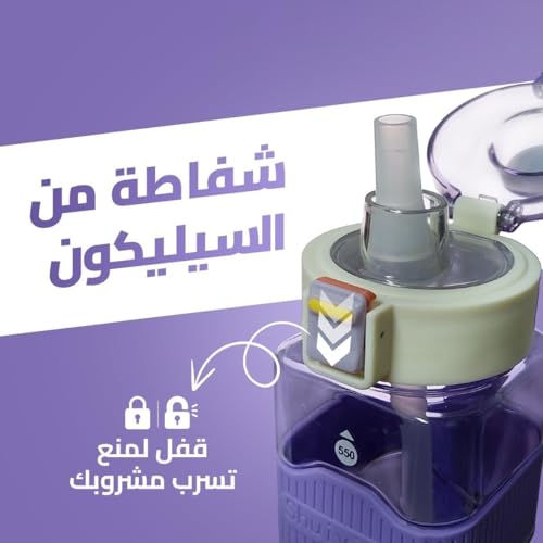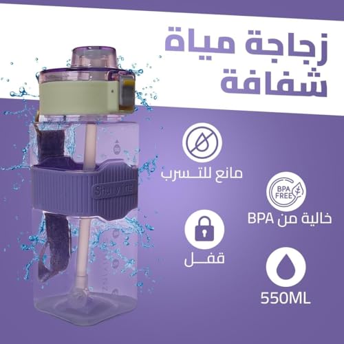 - تصميم متين ومريح: زجاجة مياه سعة 550 ملليلتر بمقبض قوي، تتميز بتصميم مثالي سهل الحمل أثناء التمارين أو السفر أو الاستخدام اليومي في المنزل.