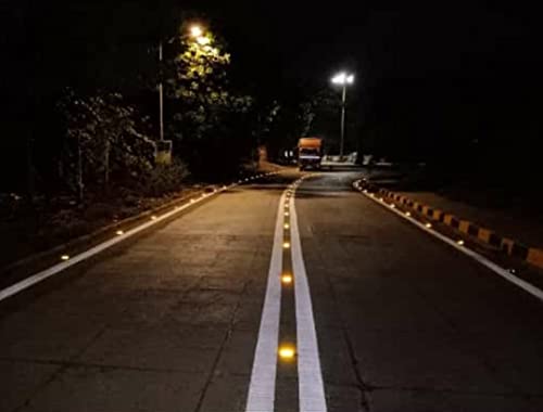 عاكس إنارة الطريق بالطاقة الشمسية، مصباح ليد بلون أصفر من الألومنيوم لمطبات السرعة والأرصفة ومعابر المشاة والطرق السريعة والممرات، من 1 قطعة من كيه تي اي®
