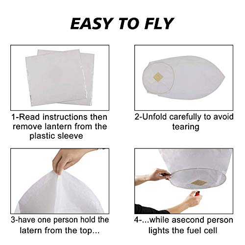 - [مثالية لأي مناسبة] تُعد فوانيس السماء الطائرة في الليل منظر جميل ورومانسي. سيحب الضيوف إطلاق فانوس مضيء في أي مناسبة خاصة. يمكنك التقاط الكثير من الصور الجميلة لذكرى جميلة ومشاركتها مع أصدقائك. مثالية لحفلات الزفاف، والتخرج، والذكرى السنوية، والاحتفال بذكرى شخص محبوب، وعيد الحب، والحفلات وحفلات إطلاق النيران والمشاعل في الهواء الطلق، وأعياد الميلاد، والنصب التذكارية، والمراسم، والجنازات، وأي مناسبات احتفالية أخرى.