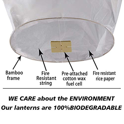 - [جودة مطورة] الفوانيس الصينية الخاصة بنا مصنوعة من ورق مقاوم للحريق ويمكن أن تطير حتى 1000 م. لا داعٍ للقلق بشأن الجمرات بعد سقوط الفوانيس. هدية اليوم - تأتي مزودة بقلم ماركر يسمح لك بكتابة أمنياتك على الفوانيس وجعلها تحلق في السماء.