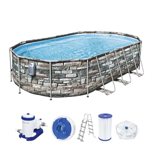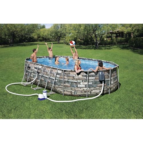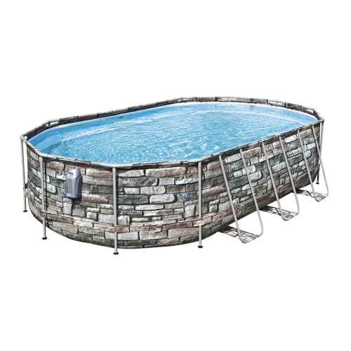 طقم حمام سباحة بيضاوي باور ستيل كومفورت جيت من بيست واي، 6.10 متر × 3.66 متر × 1.22 متر