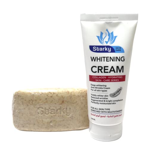 مجموعة كريم التبييض والعناية بالبشرة، كريم تفتيح 100 مل، صابونة سكرب 100 جرام، 2 جل استحمام مع صابونة لجميع انواع البشرة من ستاركي