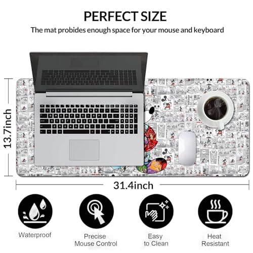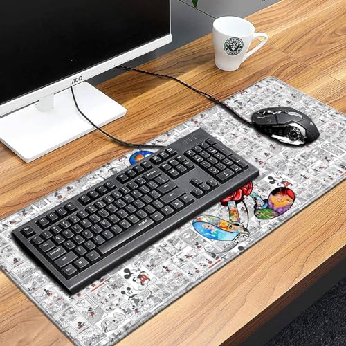 قاعدة ماوس بتصميم شخصيات لطيفة، قاعدة ماوس بحواف مخيطة، قاعدة ماوس مطاطية غير قابلة للانزلاق بتصميم مضحك للألعاب والهدايا (مقاس 35 سم × 80 سم)