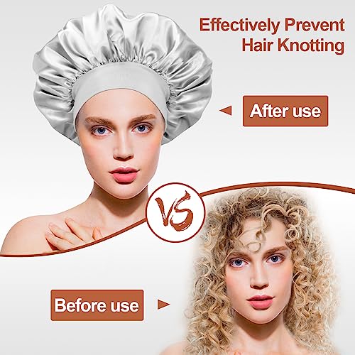 غطاء شعر حريري للنوم من الساتان للشعر المجعد للنساء والبنات من سكايسونت، قبعة حريرية للعناية بالشعر، قبعة نوم ليلية (أحمر، رمادي) 2 قطعة
