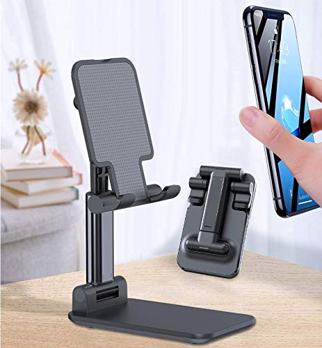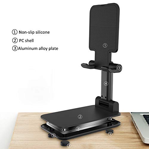 حامل موبايل قابل للتعديل للمكتب، حامل موبايل قابل للطي للمكتب، حامل سطح مكتب من الالومنيوم، حامل تابلت عالمي قابل للتعديل متوافق مع الجوال/الايباد/التابلت (اسود)