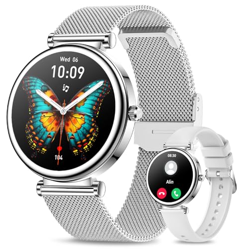 ساعة ذكية للنساء اجراء المكالمات والرد عليها 1.25 انش لتتبع اللياقة البدنية وAndroid وiOS واكثر من 100 وضع رياضي وضغط الدم ومعدل ضربات القلب ومراقبة النوم وعداد خطوات مقاومة للماء IP67 فضي