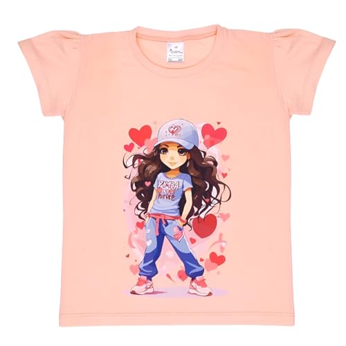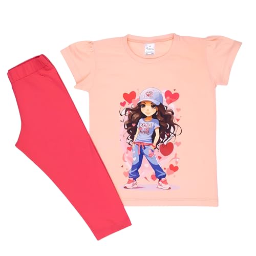طقم بيجامة مكون من قطعتين مكون من تيشرت نصف كم وبنطلون مطبوع للبنات