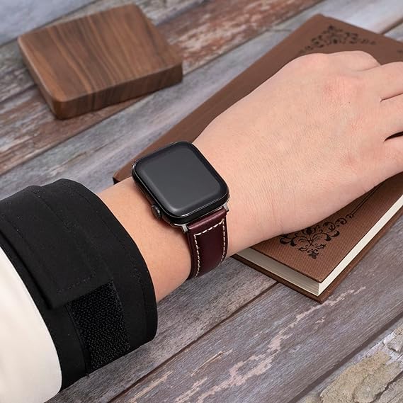عبوة من قطعتين سوار من الجلد الفاخر من Next Store متوافق مع ساعة اي ووتش للرجال والنساء لسلسلة 1/2/3/4/5/6/7/8/9مقاس 42/44/45/49ملم