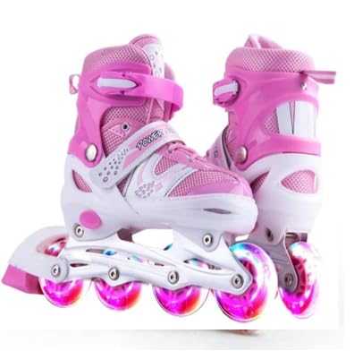4 عجلات مضيئة من باتيناج، لون بينك، مقاس (31-34)