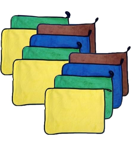 فوط تجفيف وتنظيف السيارة من المايكروفايبر قطيفة متعددة الاستخدامات للسيارة والمنزل والمطبخ - مقاس 26x36 سم- متعدد الألوان -10 قطع - رنا ستور ألياف دقيقة