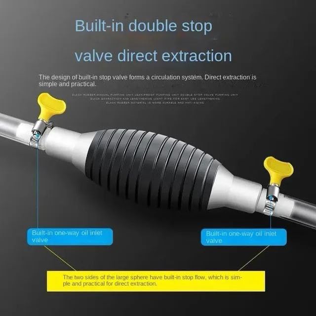 - توفر الكرة المطاطية الكبيرة المدمجة في التصميم قدرة شفط قوية، مما يسهل نقل السوائل بشكل أسرع. بالإضافة إلى ذلك، تم تجهيز الخراطيم بصمام إيقاف مدمج ثنائي الاتجاه على جانبي الكرة المطاطية، مما يمنع بشكل فعال التدفق الخلفي ويعزز تحكم المستخدم. خفيفة الوزن وقابلة للحمل، هذه المضخة اليدوية مناسبة بشكل خاص للمركبات التي تفتقر إلى مرشحات مضادة للسرقة، مما يجعلها مثالية لجزازات العشب وأدوات التشذيب وقواطع التحوط