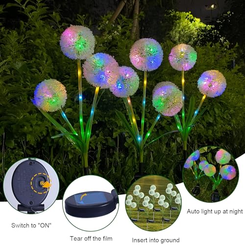 - 🌞 تتميز مصابيح الحديقة الشمسية التي تمت ترقيتها بوضعين تشغيليين: ضوء ثابت ووضع وميض. مع سلسلة من مصابيح LED متعددة الألوان ، تضيء هذه المصابيح الشمسية الليلة بألوان نابضة بالحياة ، مما يخلق جوًا جميلًا للبذوق والحدائق والمسارات والساحات ، وتعزيز المساحات الخارجية مع توهج سحري.