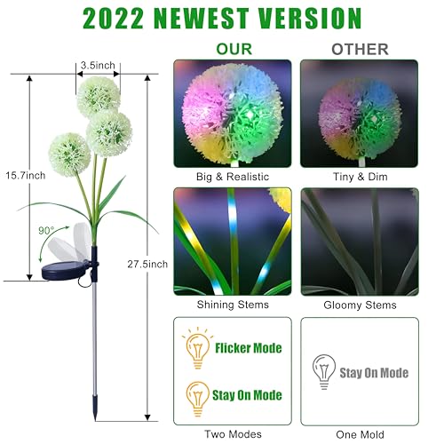 مصابيح خارجية مقاومة للماء - مصابيح تعمل بالطاقة الشمسية متينة تتحمل جميع الظروف الجوية، مثالية لتعزيز جمالية حديقتك أو فناء منزلك الفرع عبارة عن 3 ازهار مضيئة هيغير شكل منزلك و حديقتك