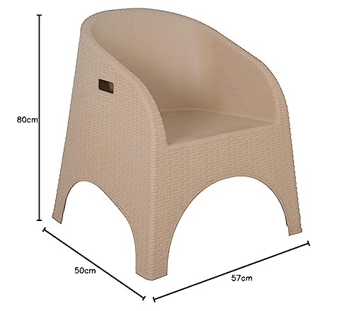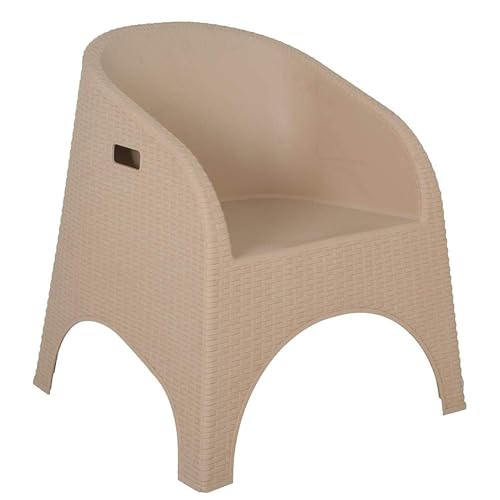 كرسي فوتيه مصنوع من البلاستيك بتصميم راتان باللون البيج