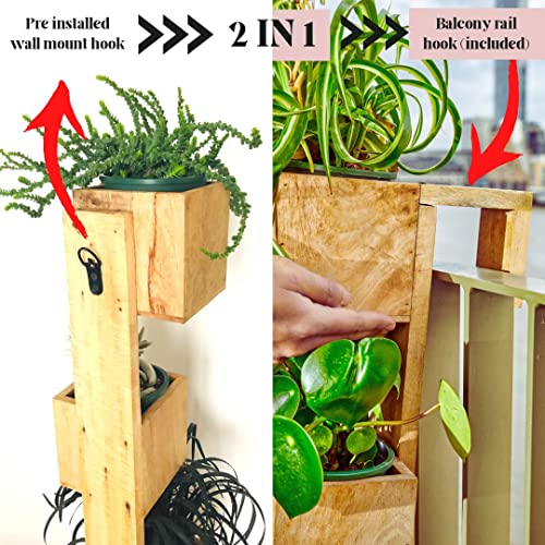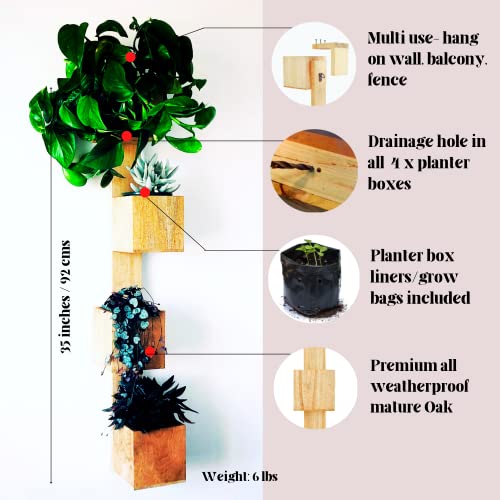 - خشب طبيعي مقاوم للطقس ومقاوم للماء - منحوتة من خشب البلوط الناضج الملون بشكل طبيعي يتميز بلمسة نهائية من زيت الساج، تم تصميم أوعية النباتات المعلقة الخاصة بنا لتدوم خلال مواسم لا حصر لها. الأبعاد: 9 انش طول × 5 انش عرض × 35 انش ارتفاع.