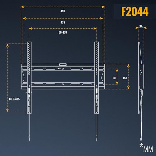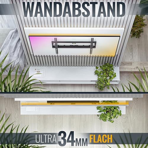 - الوظيفة: حامل التلفزيون المسطح رفيع للغاية مع مسافة حائط 34 ملم وقريب من الحائط. حامل يثبت على الحائط لا يدور أو يميل