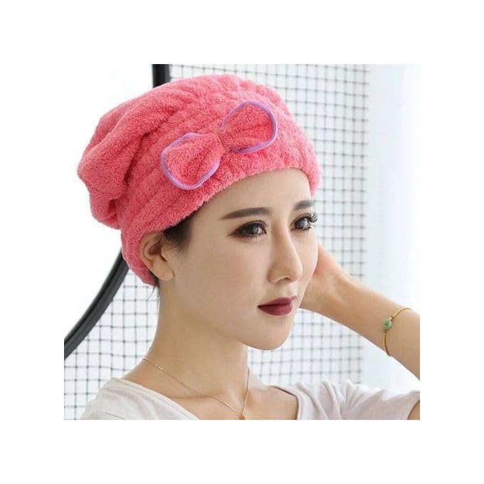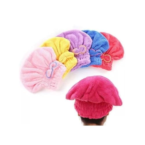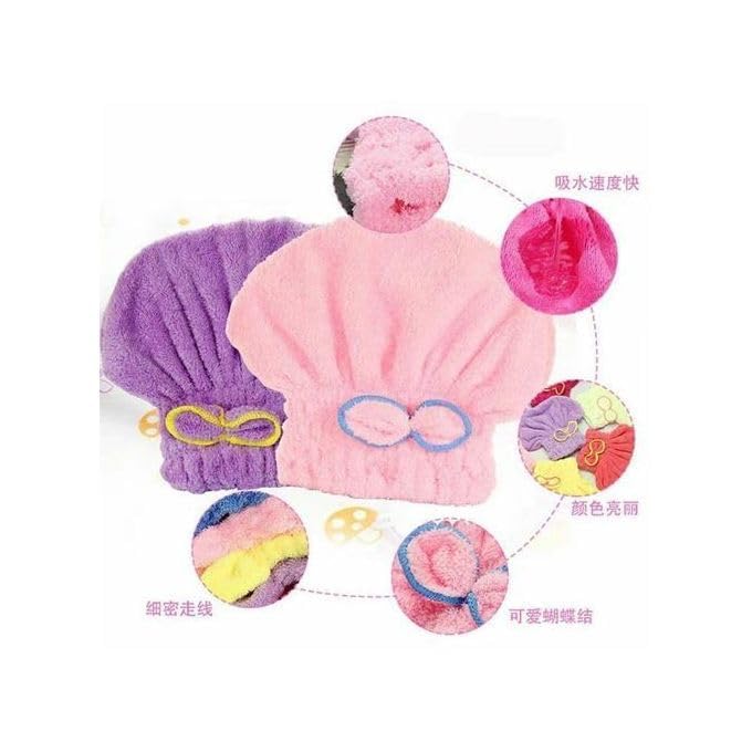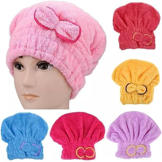 - غطاء منشفة للشعر - غطاء رأس من قطعتين بتصميم فيونكة, متعدد الألوان.